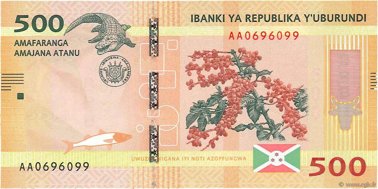 Burundi 500 frankos papírpénze a krokodillal.